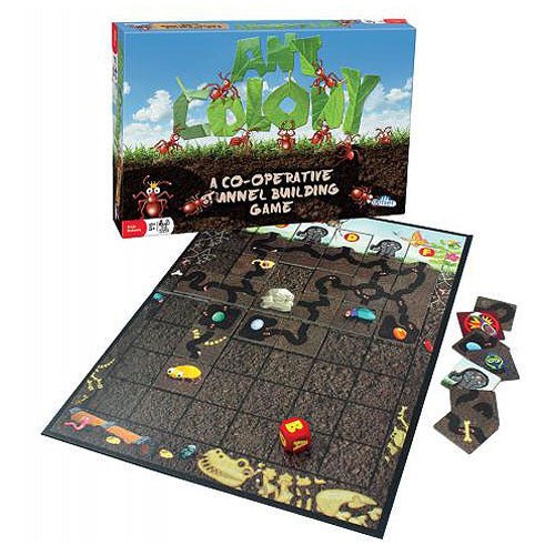 Ant Colony is loads of cooperative fun. Players must overcome obstacles as they work together to build an ant colony. Just watch out for hidden rocks, angry beetles, and pesky anteaters! Skills: Team work/cooperation, Communication, Light StrategyAges: 5+, Number of Players:2-6
