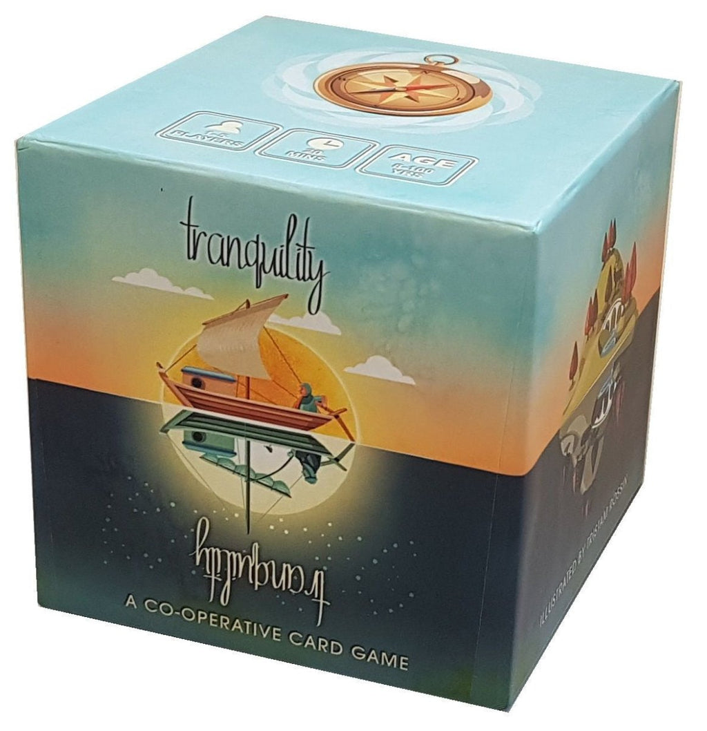 Tranquility is a co-operative card game in which players must fill the sea with islands — specifically island cards with numbers on them — and guide the ship home before any player runs out of cards. Note that in the world of Tranquility, the only way to play is in silence.