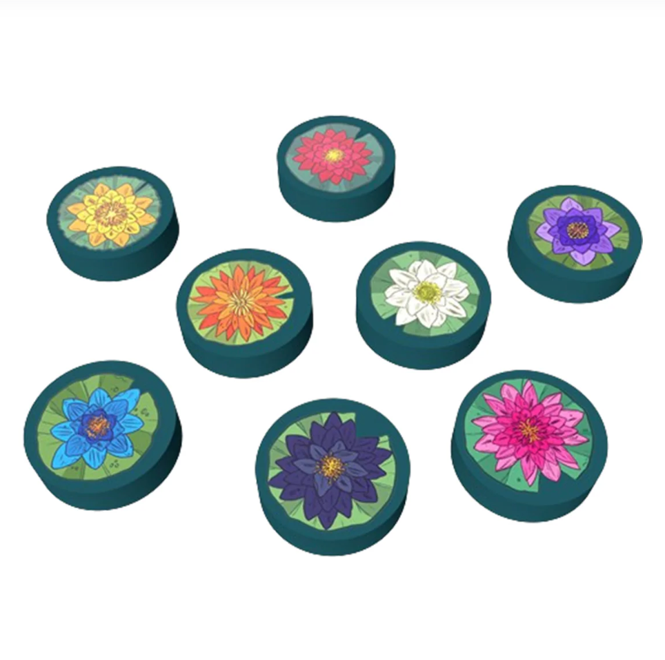 You have come to the lake hoping to see a rare and beautiful sight. The lilies of the lake only open their blossoms in the rain, and only rarely do all eight kinds of lily bloom at once. The goal of A Gentle Rain is to place the lake tiles in such a way to cause all eight types of lilies to bloom before you run out of tiles and the rain ends.
