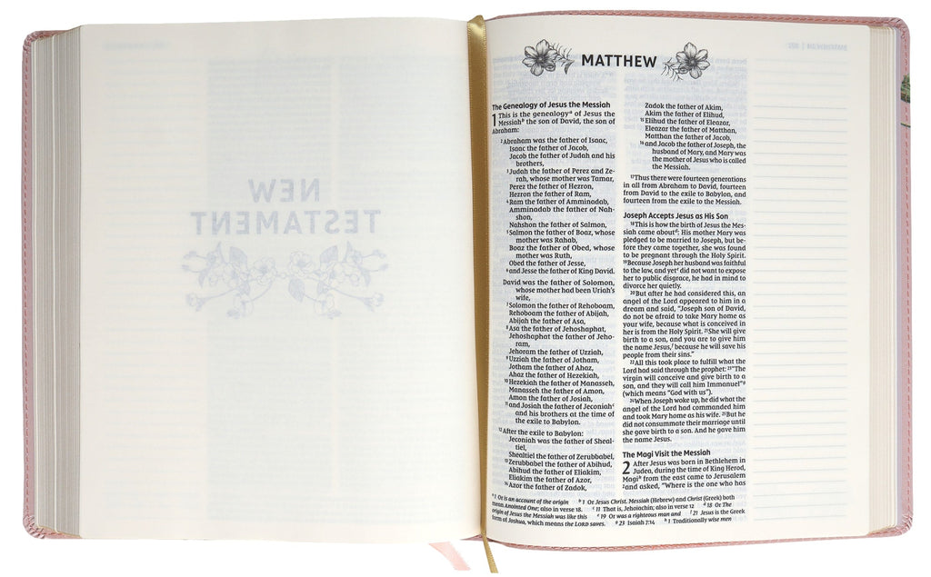 The floral covers are designed to reflect the beauty of the world around us and the carefully composed interior features more floral elements, along with a double-column typesetting, allowing you to carry this Bible wherever you go.