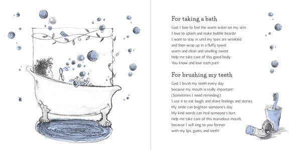 Little Prayers for Ordinary Days is a collection of short prayers for children to pray in the midst of their day: on the way to school, after seeing a friend, when noticing a bird in the tree, or looking at the stars, or during any of their comings and goings.