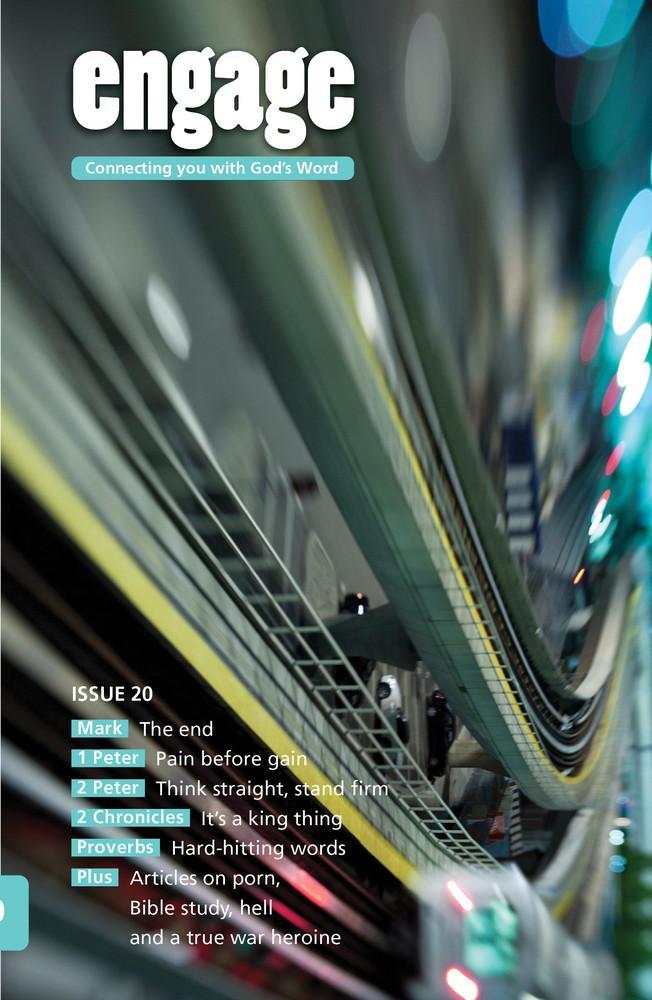 Issue 20 of Engage looks at Mark, 1 Peter, 2 Peter, 2 Chronicles and Proverbs There are also articles on pornography, Bible study, hell and Corrie Ten Boom Engage exists to help you plug into your Bible. Through Engage's pages we want to plunge into God's awesome word: discovering who God is and what He's like; seeing what God's done for us through Jesus; and exploring practical ways of living for Him. The Bible is packed with amazing stories and life-changing teaching. It's time to dive into the Bible and see God change our lives...