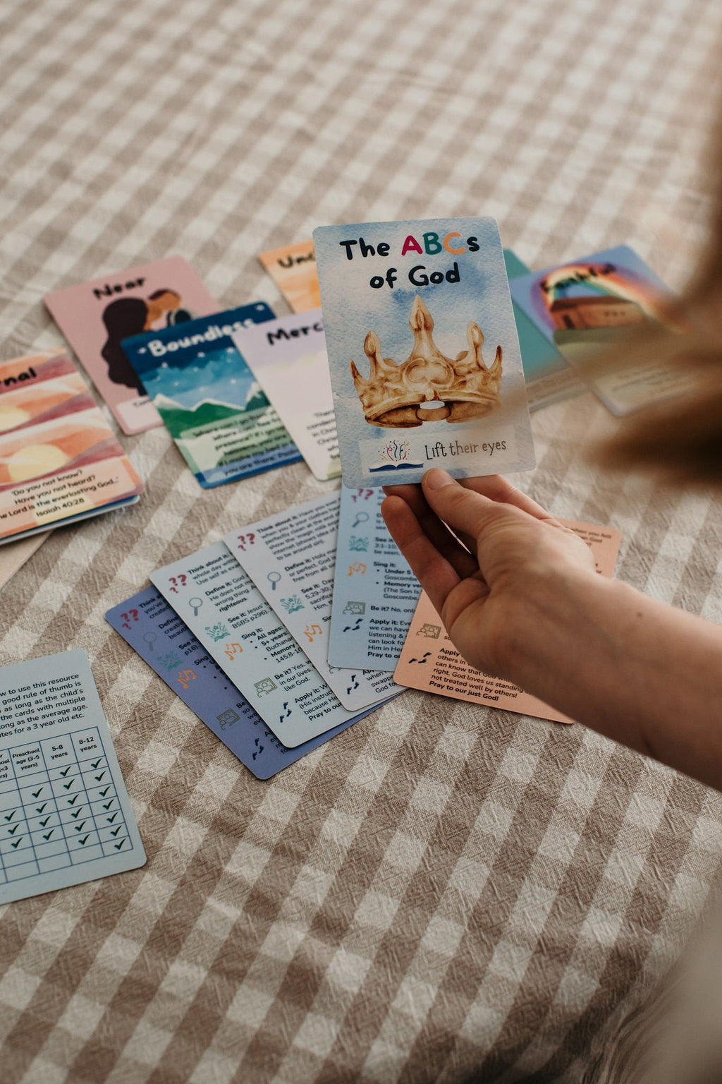 Help kids fix their eyes on our God with these simple, fun, beautiful & durable devotional cards for all ages. Included is an in-depth exploration of 26 attributes of God.