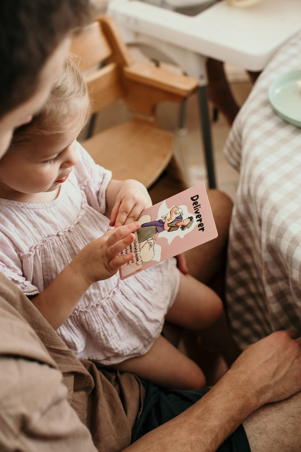 These large 13 cm x 9 cm cards are perfect for individual use or group settings. Made from thick cardstock with matte laminate for durability, with rounded corners. Custom-designed, washable drawstring bag included.